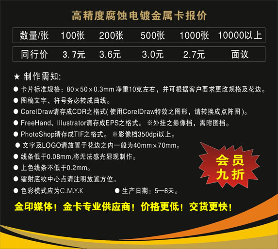 金属卡 价格表