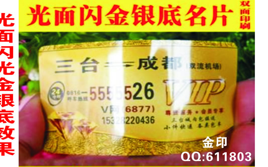 PVC名片胶印(标准规格为85mmX54mmX0.4mm和48*88*0.4MM 接Photoshop(分层)、Coreidraw、illustrator软件,其余文件拒绝接受。名片 印刷要求为正面四色、反面单色(含珠光底效果),如有其他要求可电话询价。只接偶数订单,正常发货期5天。