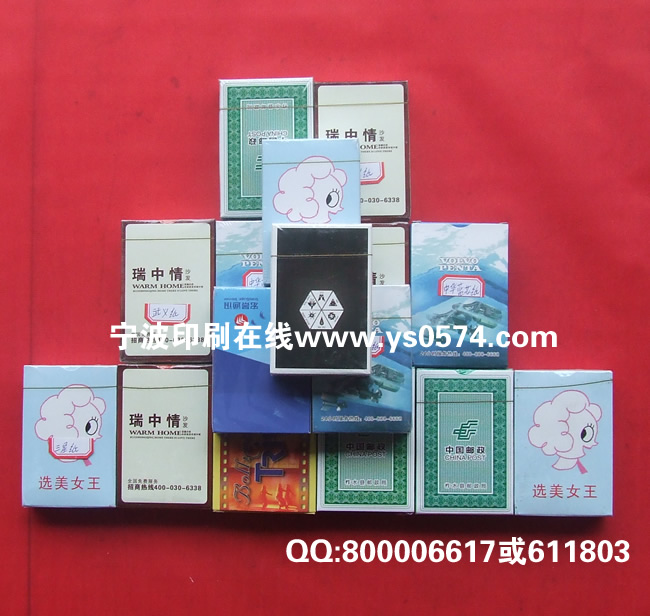| 2.广告扑克牌通用规格为57*87mm,外盒58*88*18mm,扑克牌表面有上光,盒子表面有覆膜,外盒为白卡纸250g |